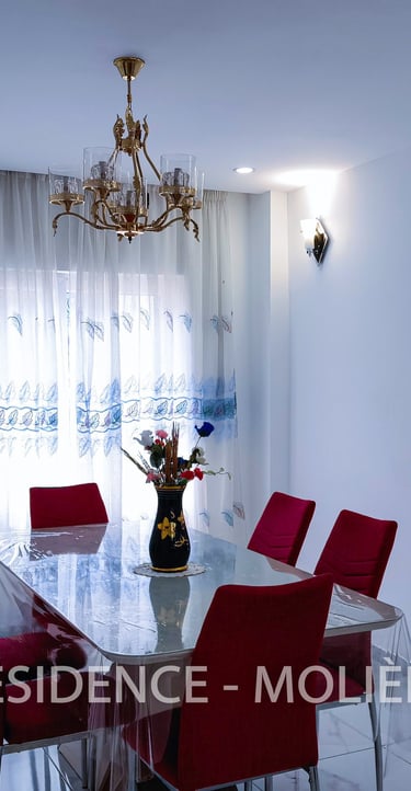 Suivez-nous sur Facebook, Instagram et TikTok pour découvrir nos offres spéciales, nos actualités et les coulisses de la Résidence Molière. Restez connectés et partagez votre expérience avec nous !